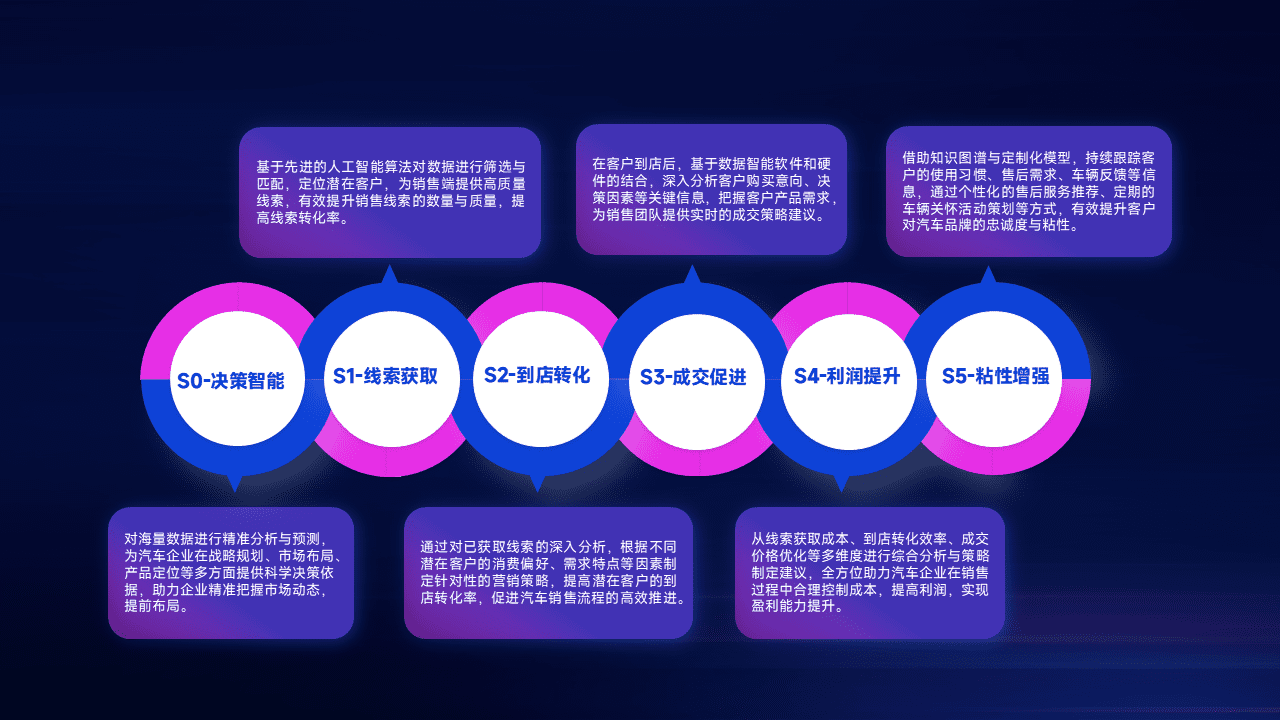通过拓宽潜在客户来源、、、优化线索分配并提高到店转化率,,以增强销售效率。。。。同时,,,,利用线索数据不断优化分析模型,,有效提升转化率,,,扩大营销影响力。。